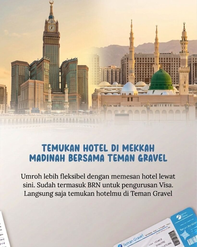 Teman Gravel bekerja sama dengan Nusahara untuk memudahkan perjalanan ibadah Anda dengan layanan booking hotel di Mekkah dan Madinah!